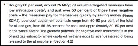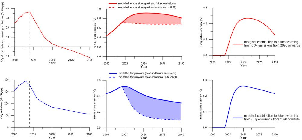 Moreover, there is an ‘opportunity cost’ argument that could be made about methane emissions reductions: Any emissions of CH4 that aren’t reduced form a missed opportunity to cool the climate, because reducing CH4 emissions for a sustained period of time does indeed result in cooling influence (unlike CO2, which only cools when emissions are negative).